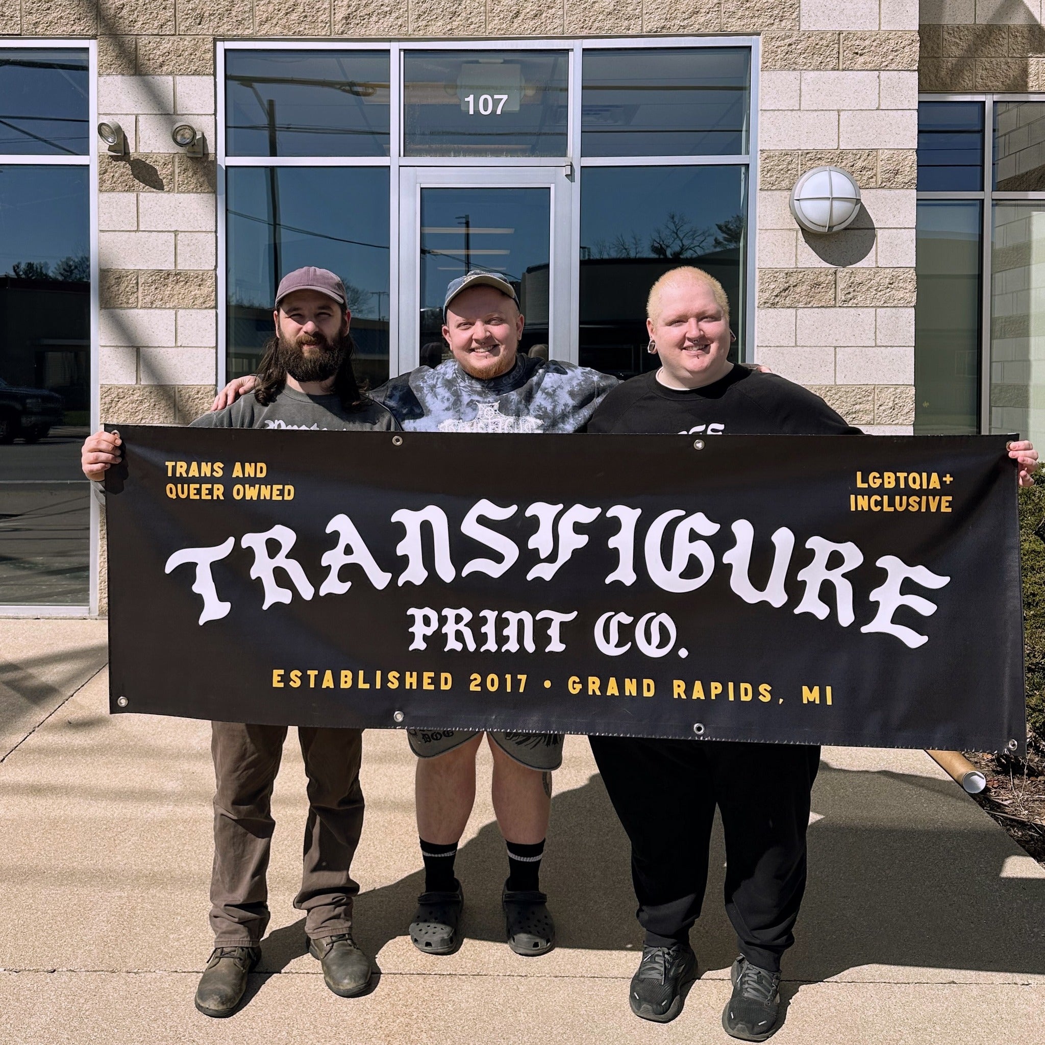 Transfigure Print Co. is an LGBTQ+ inclusive screen printing collective that works for and with the Trans and Queer community. Our Michigan-based team creates and prints inclusive apparel and goods that support and raise money for individuals and organizations who are shaping the LGBTQ+ community across the country.