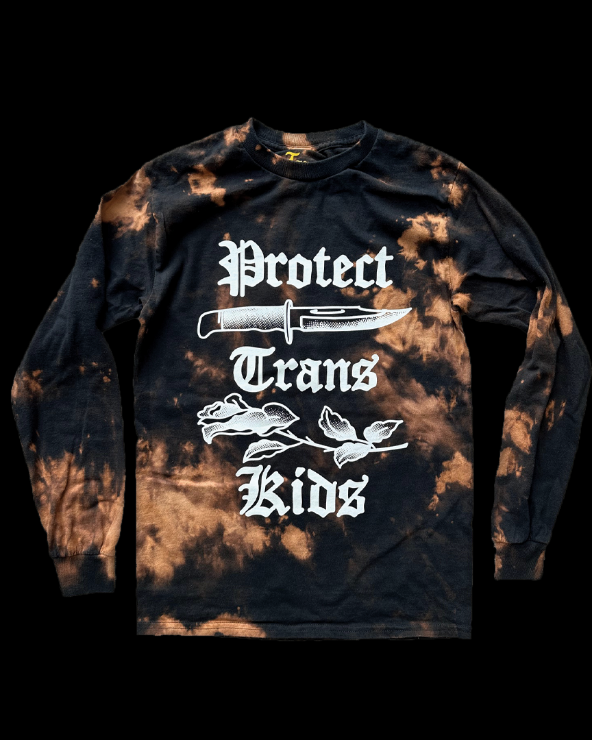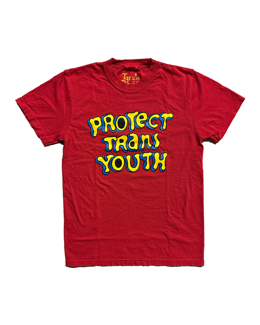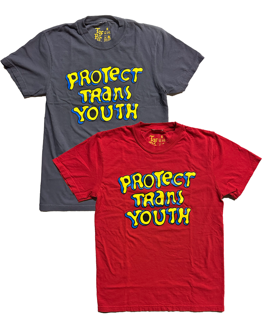 We carry a variety of goods designed by our in-house team and Queer artists from across the U.S. Maybe you’ve seen our viral “Protect Trans Kids” shirt designed by Rio Wolf floating around the internet? Go ahead and get your own!