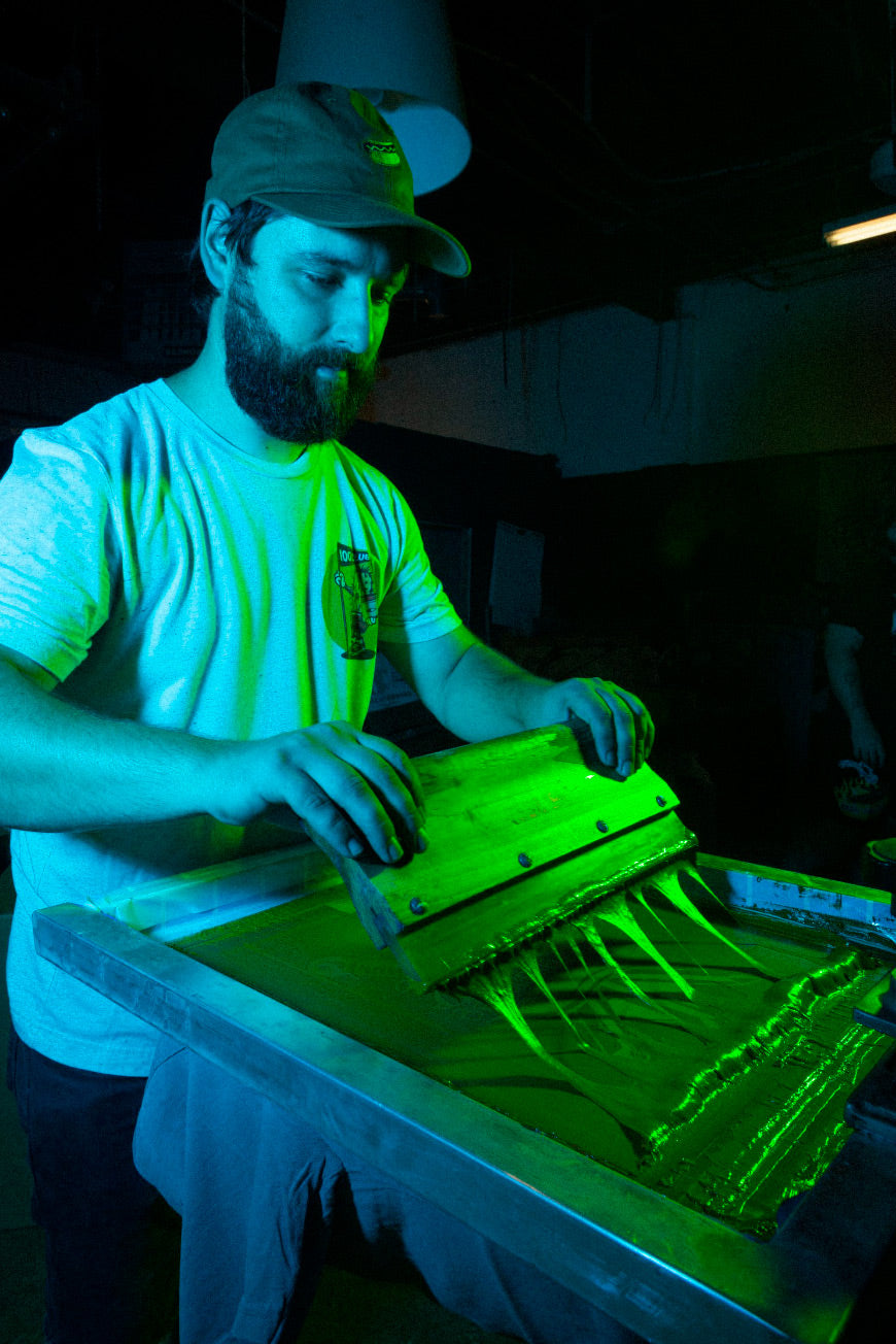 Nearly every product sold with TFPC is printed by hand and in-house in Grand Rapids, Michigan. Our small team is queer owned and operated and handles every part of production – from burning the designs into screens, to mixing custom inks, to packaging and sending out the final designs. Our ability to produce apparel in-house means we take the time to ensure each piece is printed and cured correctly, delivering exactly what you paid for.