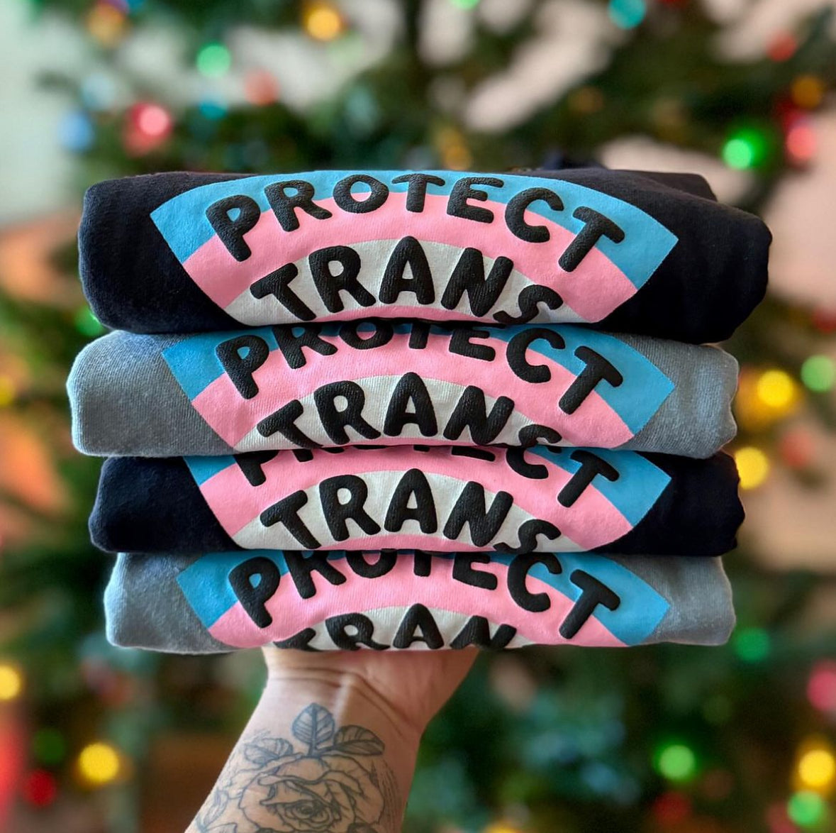 Each month, we donate 10% of our total profits from the sales of our most popular designs, “Protect Trans Kids” and “Protect Trans Folks” created by Rio Wolf. So far, in combination with the Trans Fund, we have raised over $90,000 for over 50 different LGBTQ+ organizations.